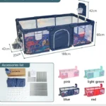 With a large rectangular design, the playpen provides plenty of room for crawling, walking practice, and interactive play. It can also be used as a baby dry pool or toy activity zone, keeping toys organized in one safe space.